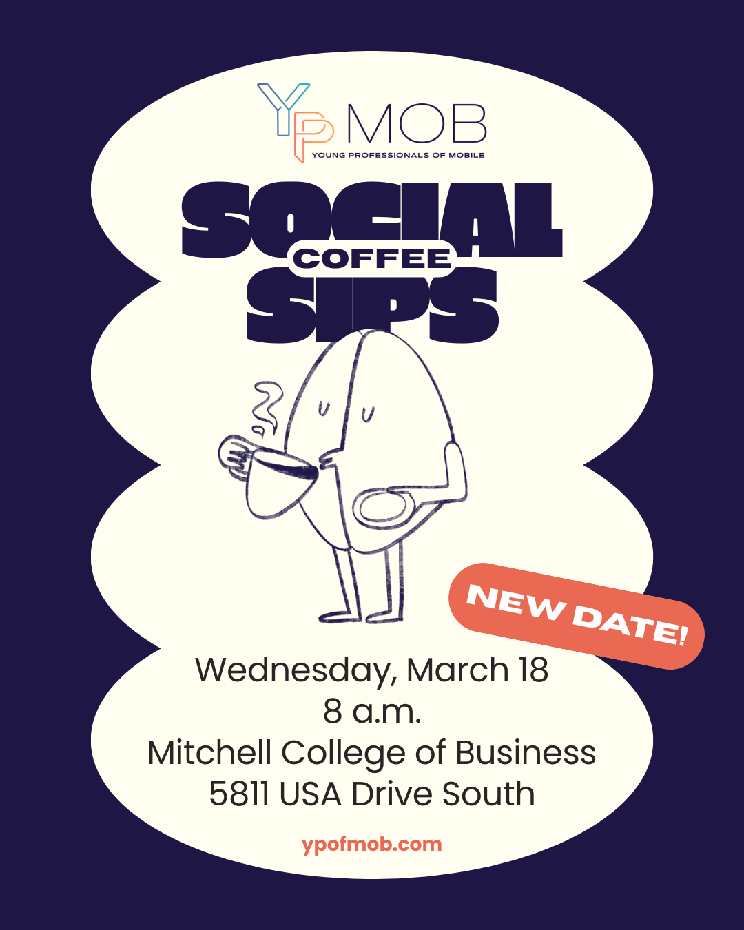 We hope you can join us for our upcoming YP of MOB Coffee Social at the University of South Alabama's Mitchell College of Business on March 18th at 8 am.